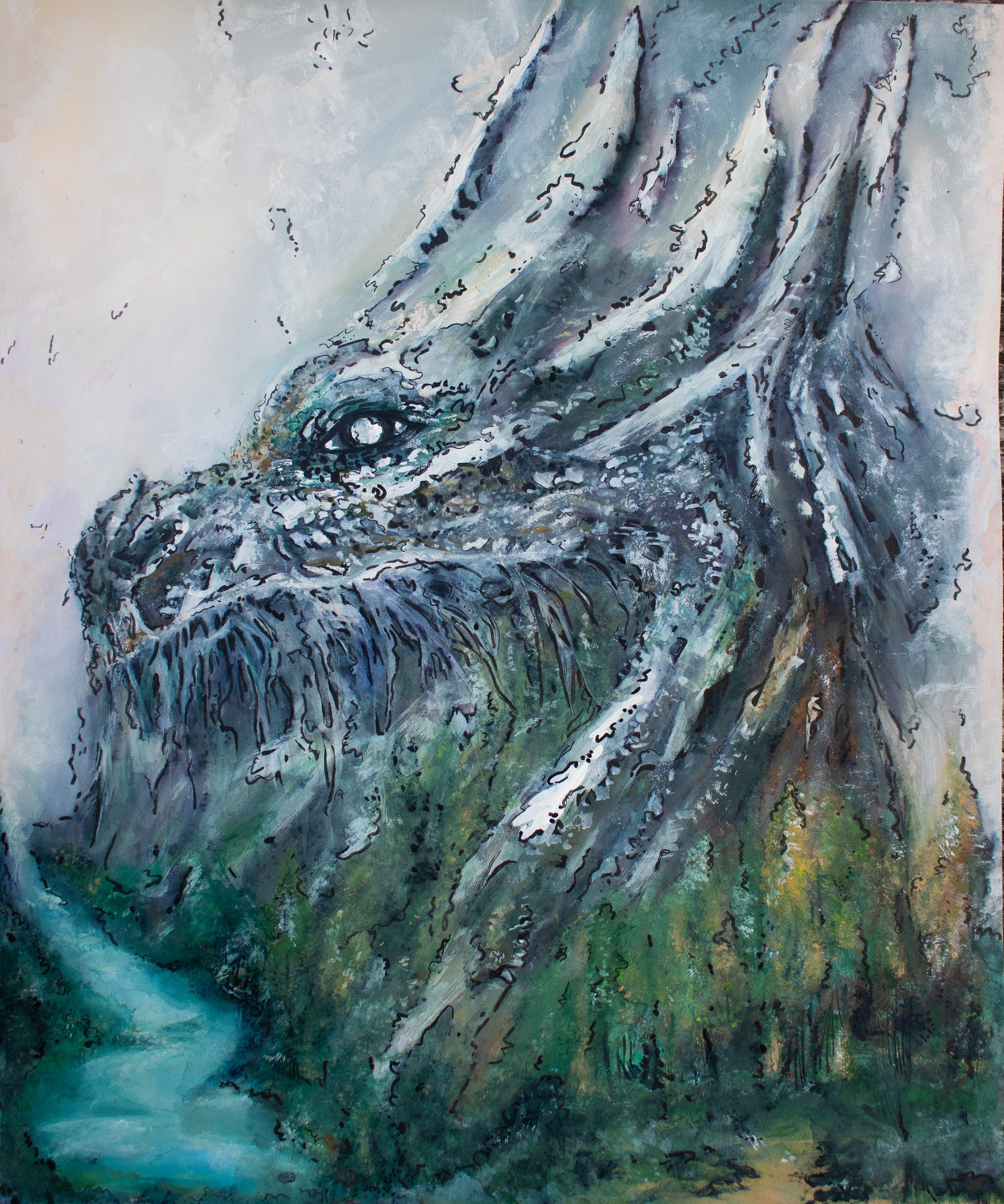 I was inspired by the beauty of mountains, trees, and rivers for this piece. I guess my inner Bob Ross certainly came out for this one.